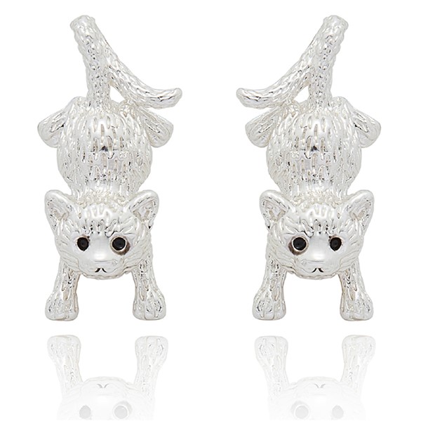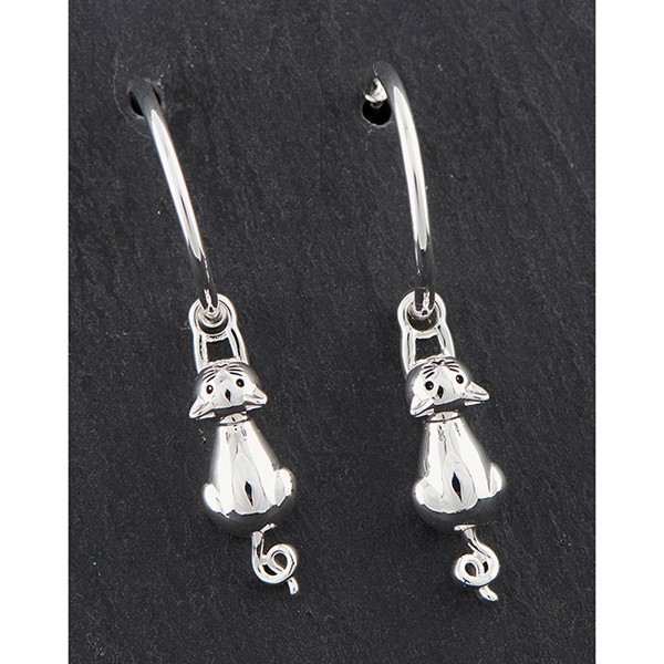 Hanging Cat Silver Plated Earrings
