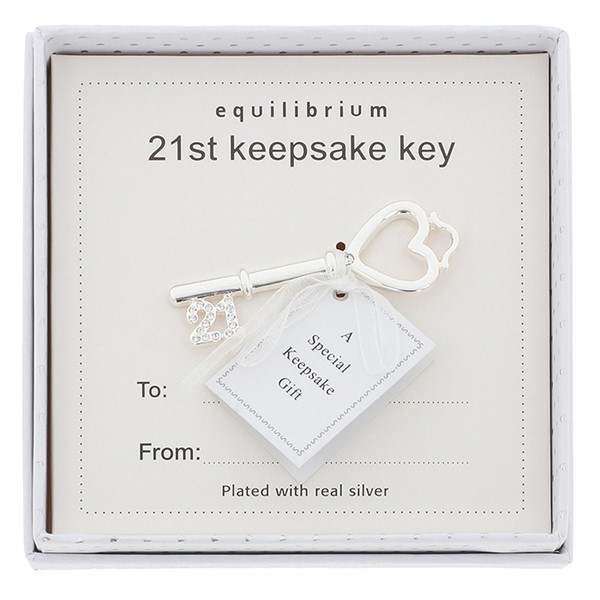 Equilibrium Silver Plated Keepsake Key 21st