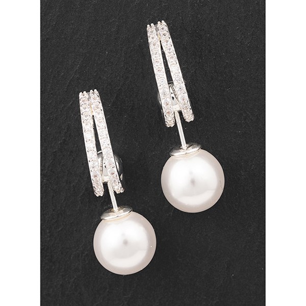 Pearl Diamante Drop Silver Plated Earrings
