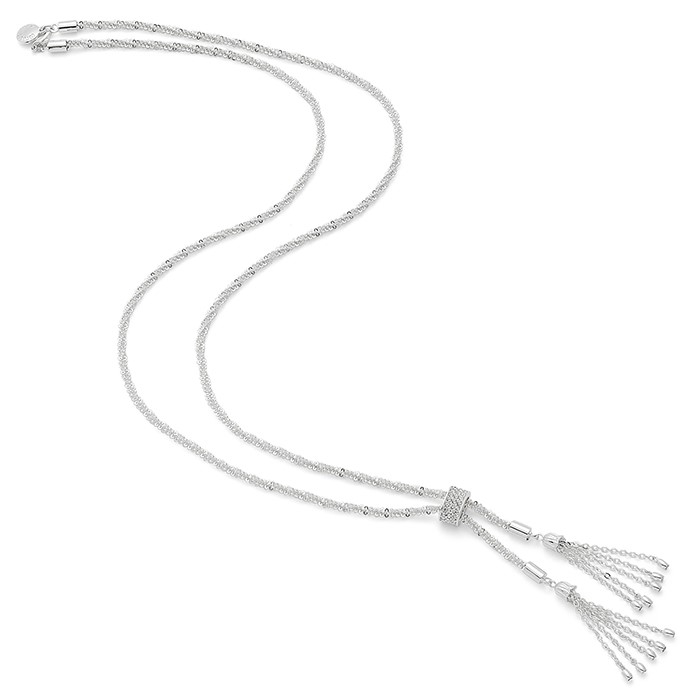 Contemporary Long Silver Plated Rope Tassel Necklace