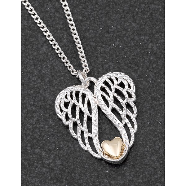 Angel Wings With Heart Two Tone Necklace