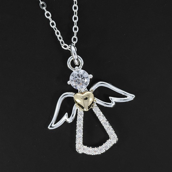 Two Tone Filigree Guardian Angel Necklace