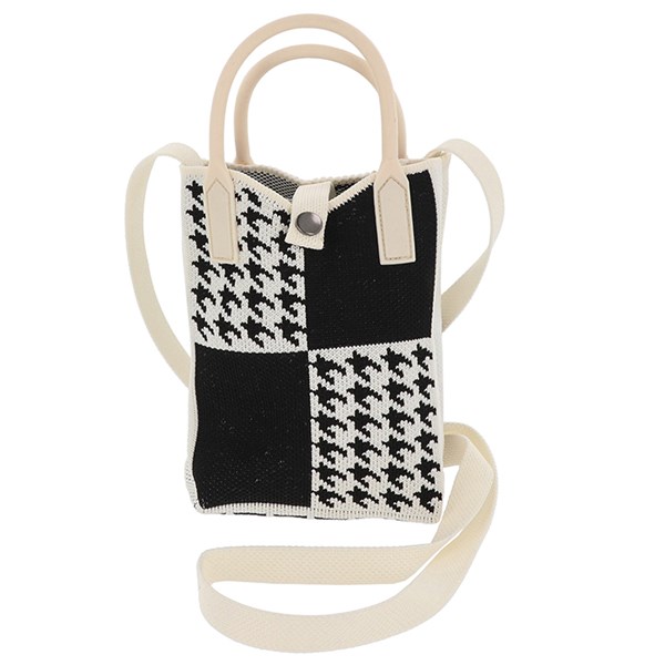 Knit Phone Bag Squares Black White