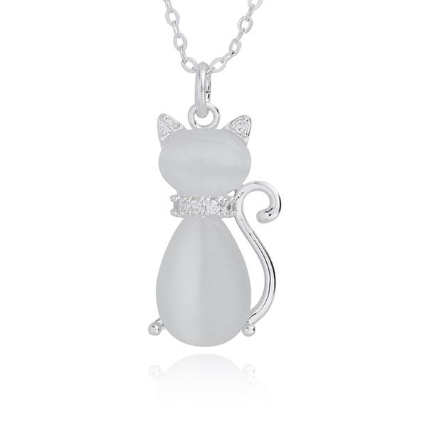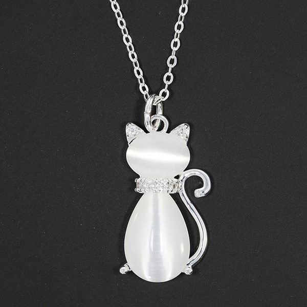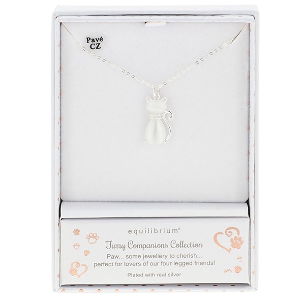 Furry Companions Moonstone Cat Silver Plated Necklace