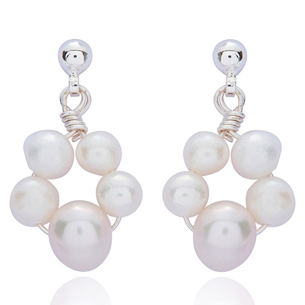 Paw Print Fresh Water Pearl Silver Plated Earrings