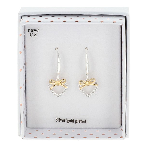 Te Amo Two Tone Heart Bow Earrings