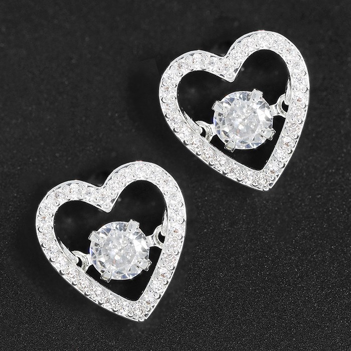 Moving Crystals Silver Plated Glam Heart Earrings