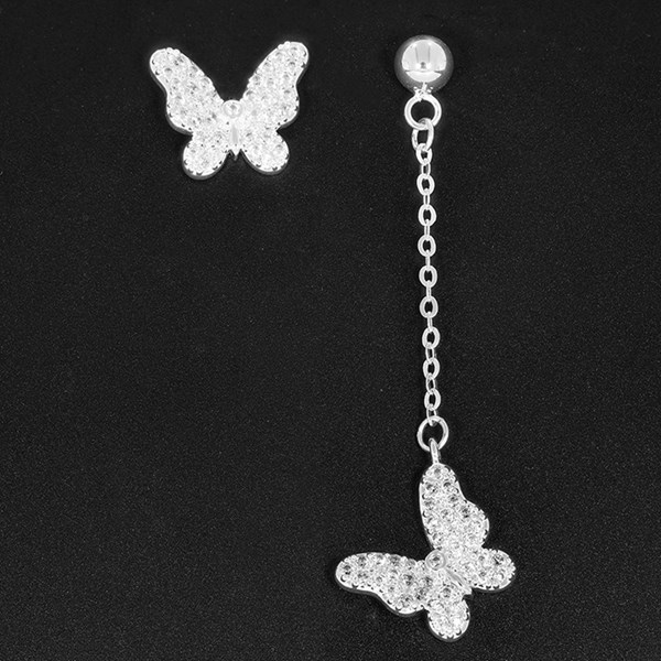 Asymmetrical Silver Plated Butterfly Earrings