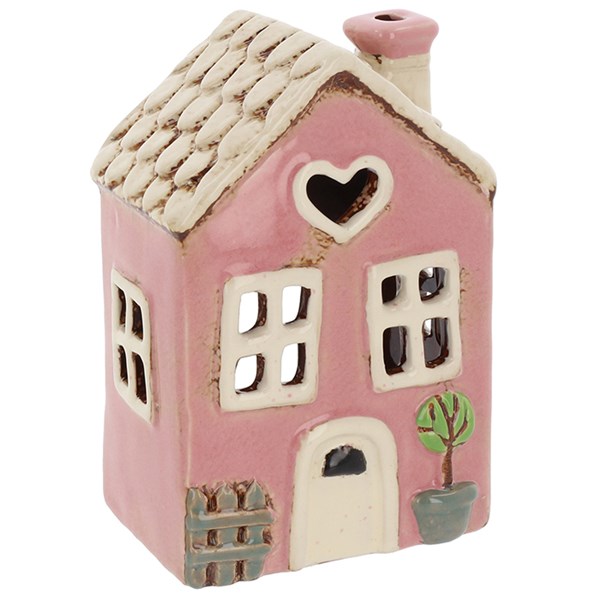 Village Pottery Garden Heart House Pink Tealight