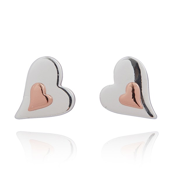 Polished Two Tone Heart In Heart Studs