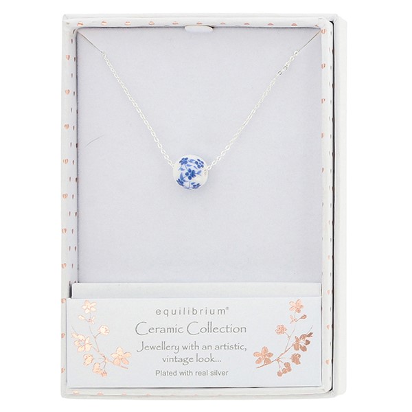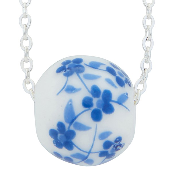 Ceramic Floral Silver Plated Necklace Blue