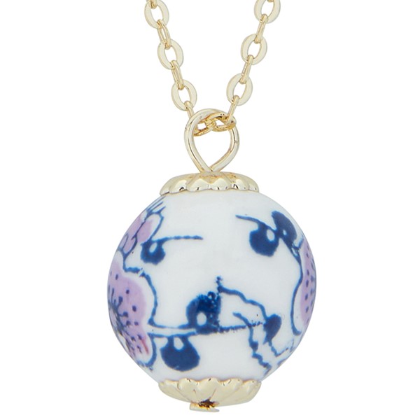 Ceramic Floral Gold Plated Necklace Pink