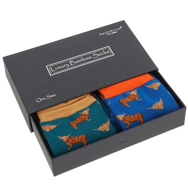 Men's Bamboo Socks Giftbox Highland Coo