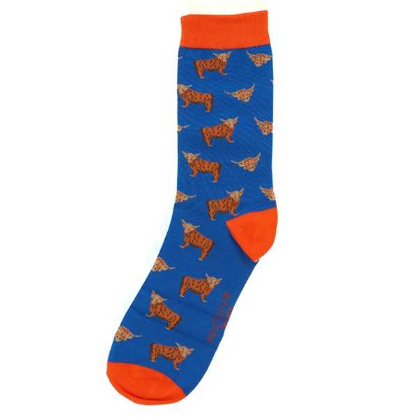 Men's Bamboo Socks Highland Coo Blue