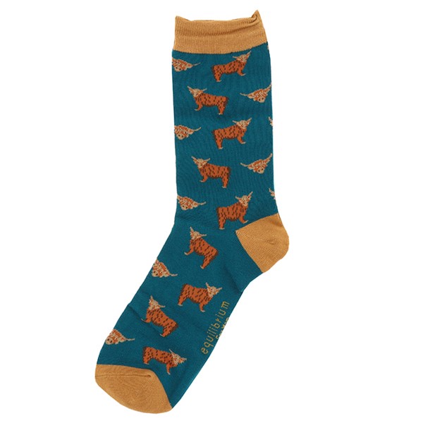 Men's Bamboo Socks Highland Coo Teal