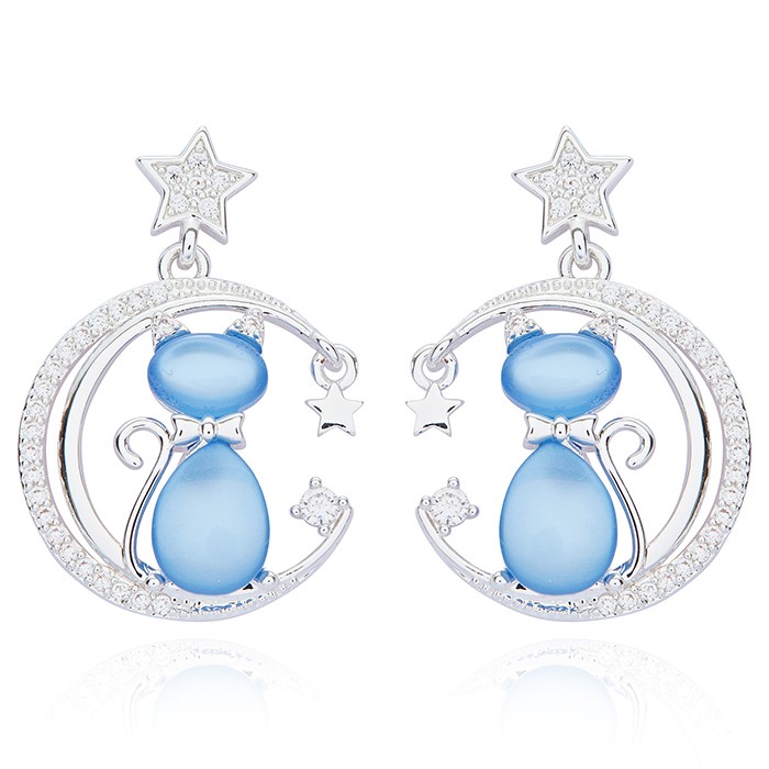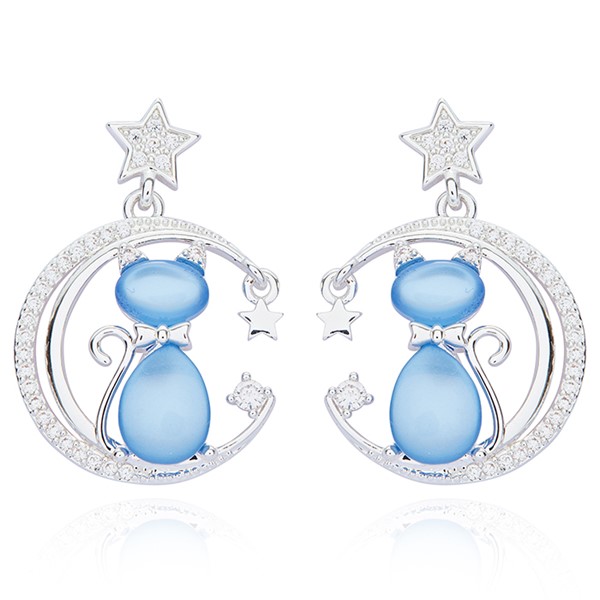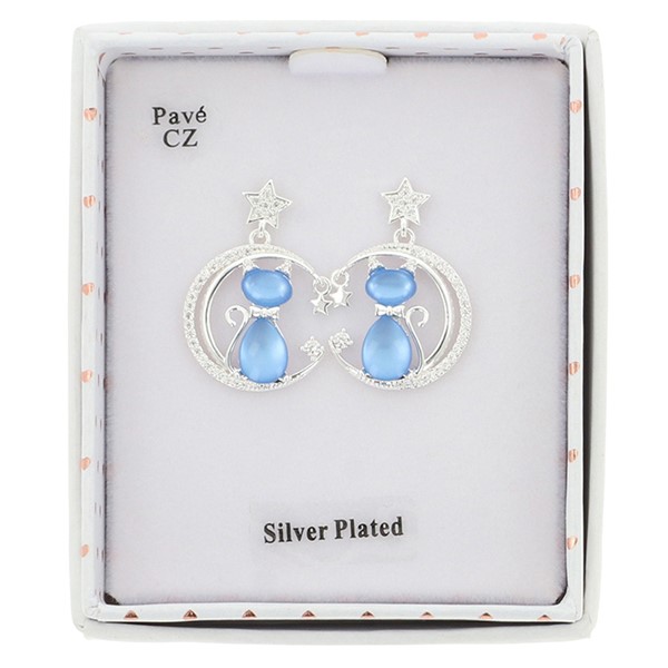 Furry Companions Cat On Moon Silver Plated Earrings