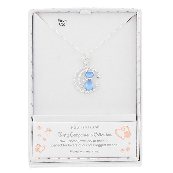 Furry Companions Cat on Moon Silver Plated Necklace