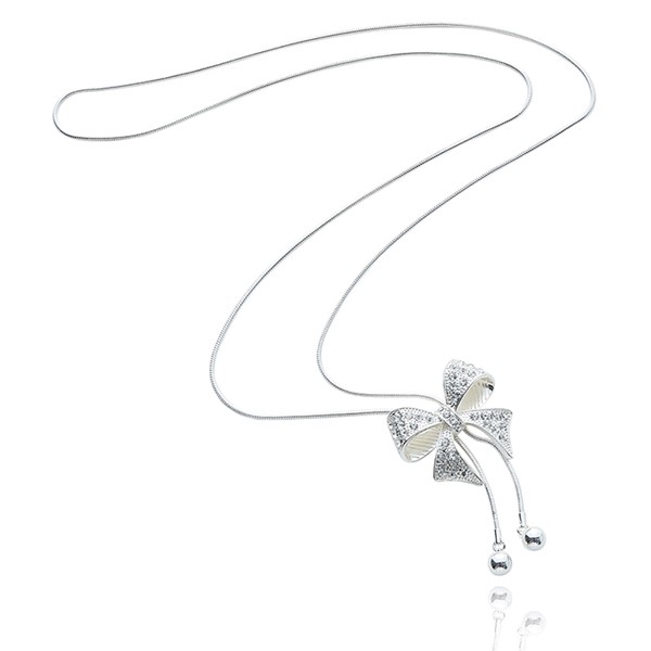 Contemporary Long Silver Plated Necklace Pretty Bow