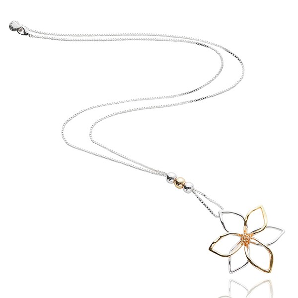 Contemporary Long Two Tone Necklace Flower