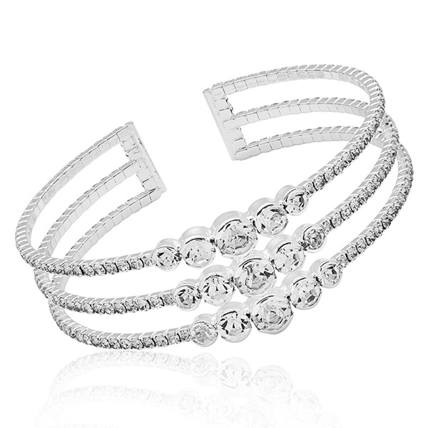 All That Bling Three Tier Silver Plated Cuff Bangle