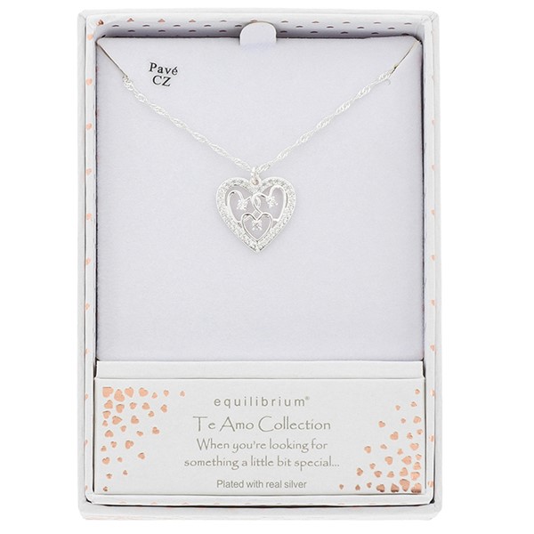 Te Amo Scribble Hearts Silver Plated Necklace