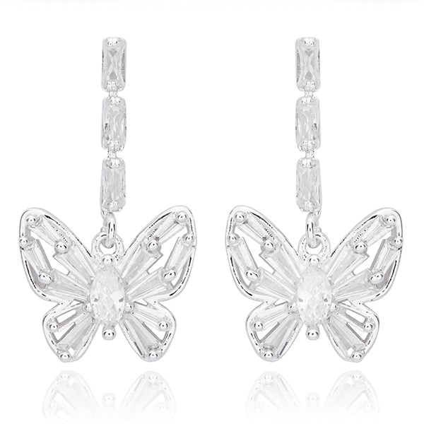 Glam Baguette Butterfly Silver Plated Earrings