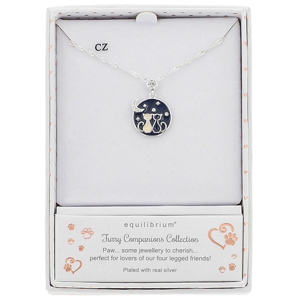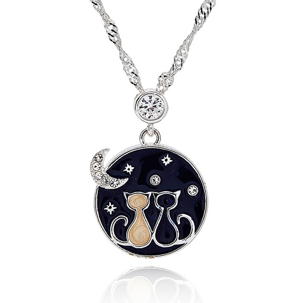 Stargazing Cats Silver Plated Necklace
