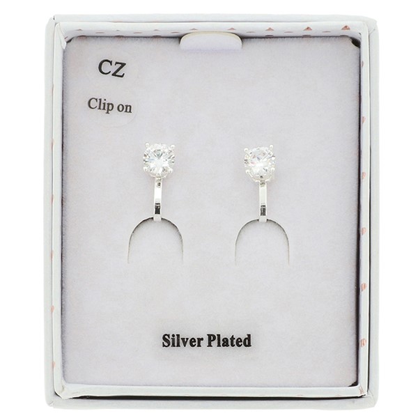 Solitaire Silver Plated Clip On Earrings