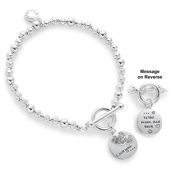 Heartfelt Words Silver Plated Bracelet Love Moon