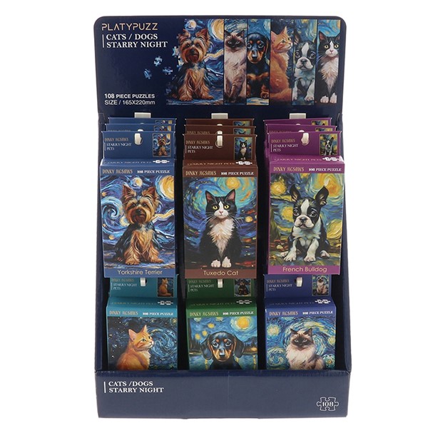 Dinky Jigsaws are a delightful collection designed to engage and educate. Each beautifully packaged jigsaw puzzle offers hours of fun, captivating customers of all ages. With four unique designs - Van Gogh, Monet, World Travel, and Cats - there's something for every taste.