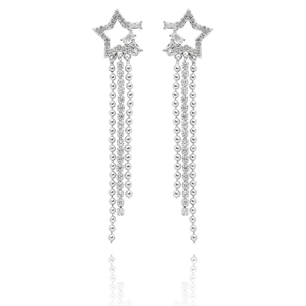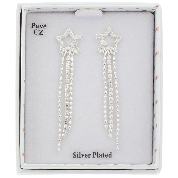 Shimmering Star Silver Plated Tassel Earrings