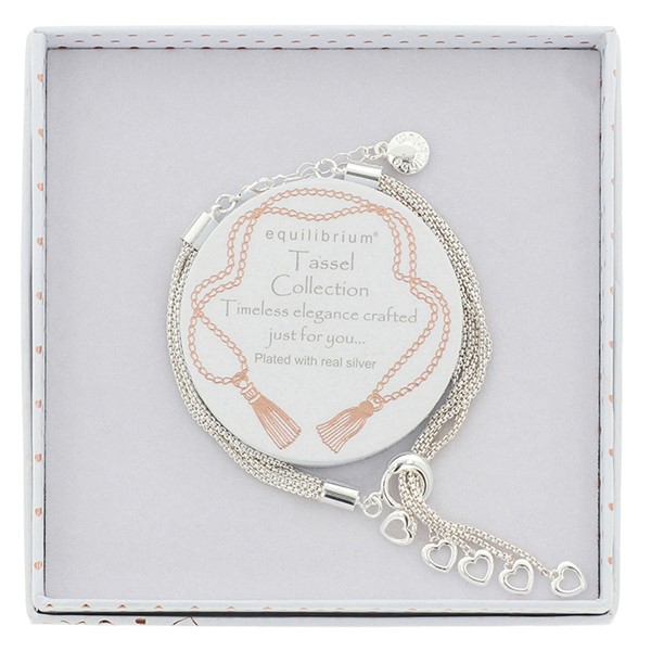 Multi Hearts Silver Plated Tassel Bracelet
