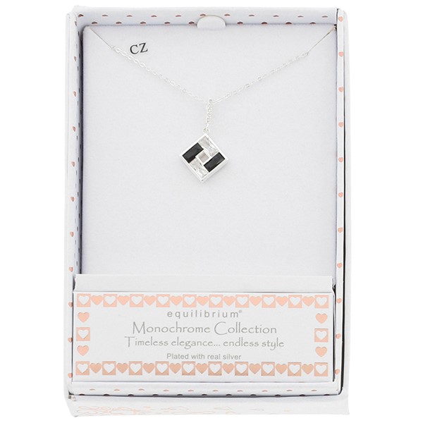 Monochrome Baguette Square Silver Plated Necklace