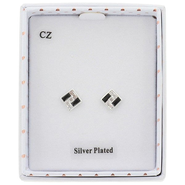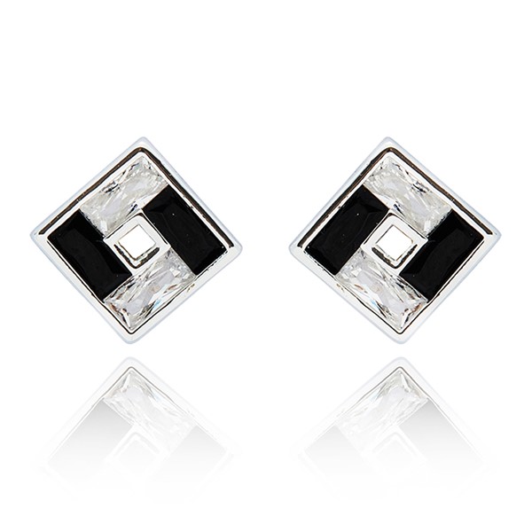 Monochrome Baguette Square Silver Plated Earrings