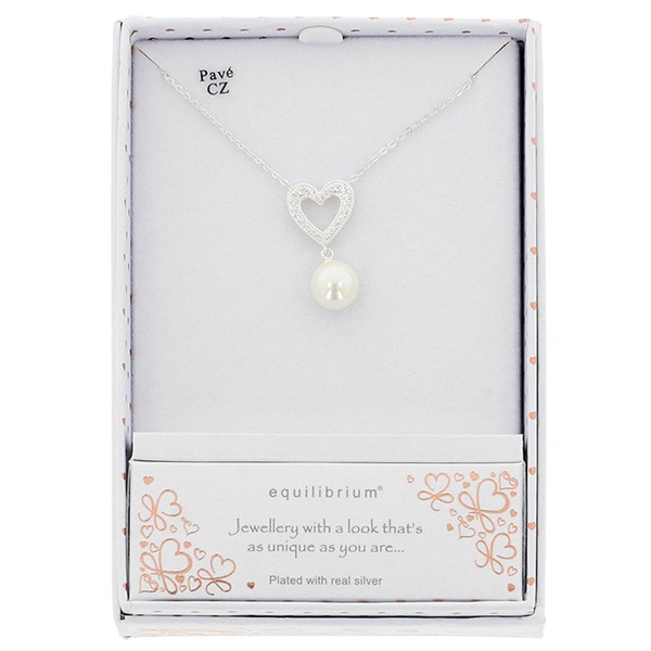 Sparkle Heart Freshwater Pearl Silver Plated Necklace