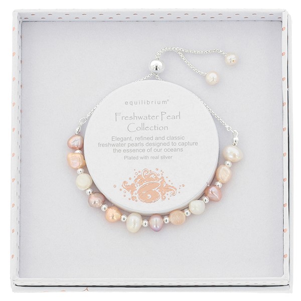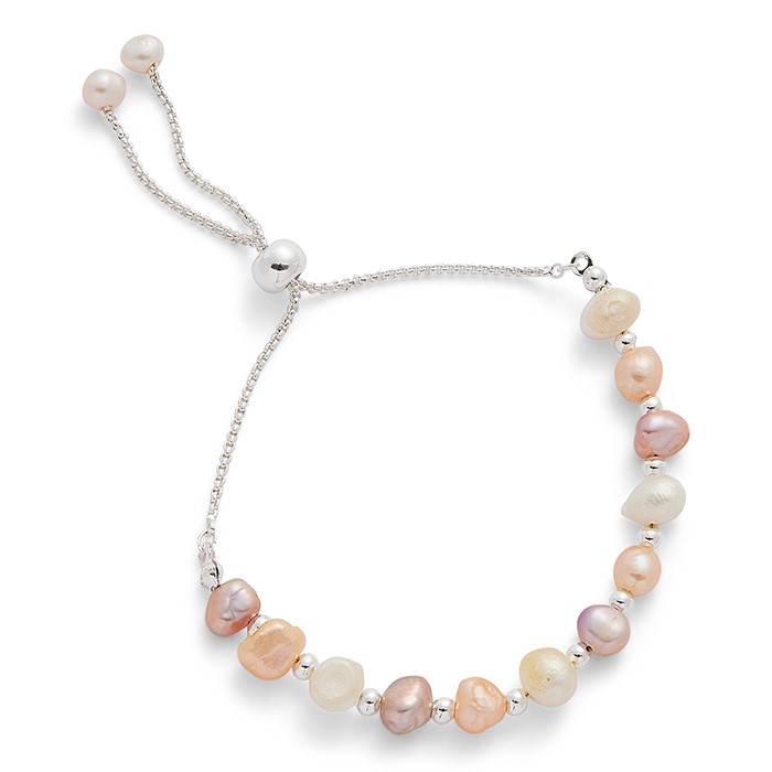 Freshwater Pearl Three Tone Silver Plated Friendship Bracelet