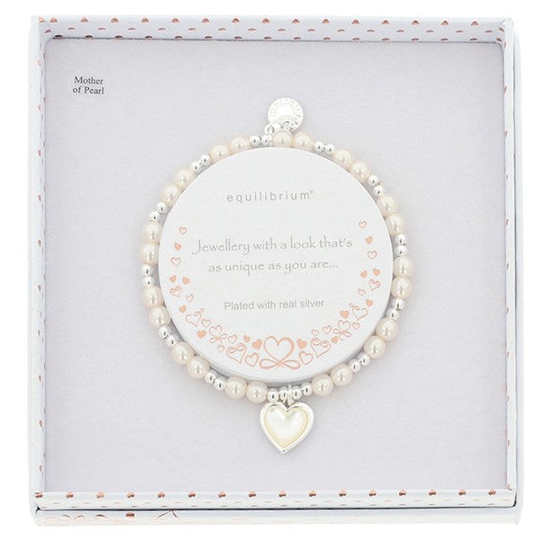 Pearl & Mother of Pearl Silver Plated Heart Bracelet