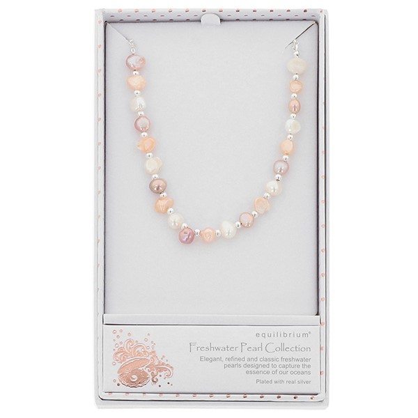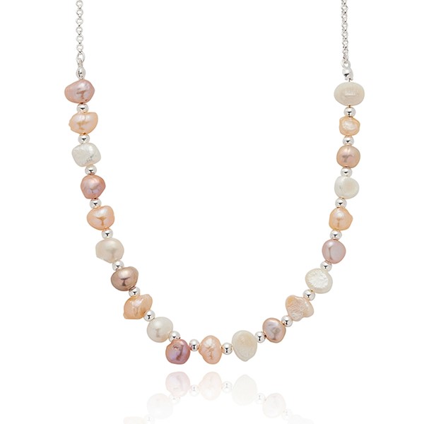 Freshwater Pearl Three Tone Silver Plated Necklace