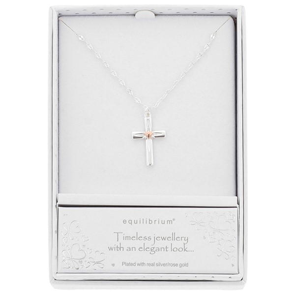 Two Tone Cross With Heart Necklace