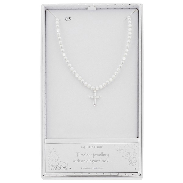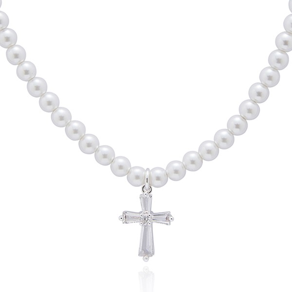 Pearls Silver Plated Cross Necklace