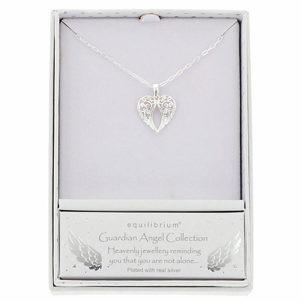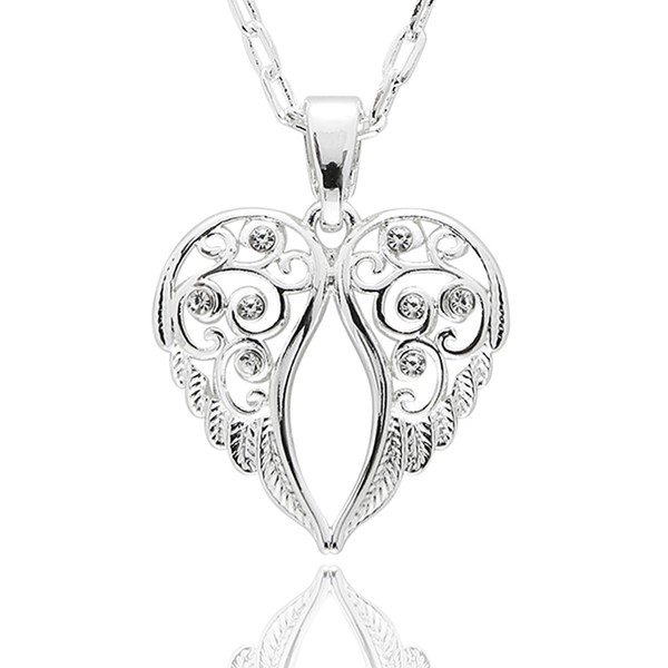 Guardian Angel Silver Plated Filigree Wings Necklace