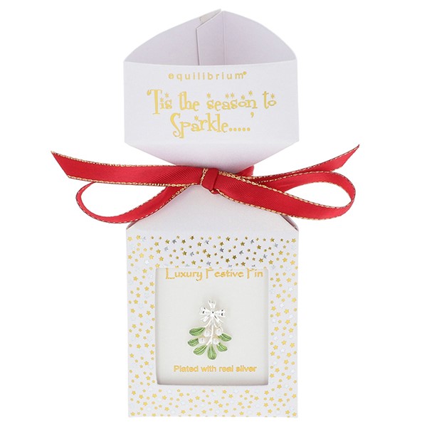 Xmas Cracker Silver Plated Mistletoe Pin