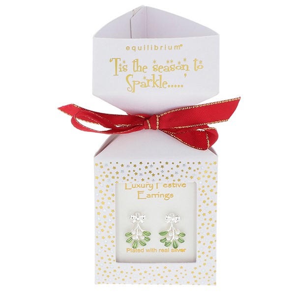 Xmas Cracker Silver Plated Mistletoe Earrings