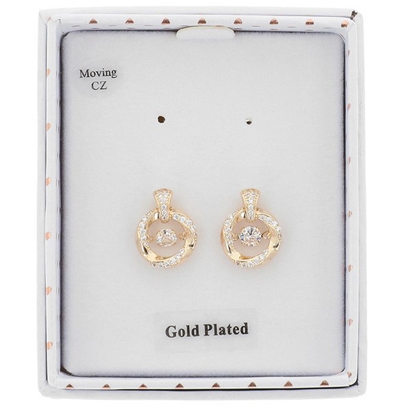 Moving Crystal Circle Twist Gold Plated Earrings
