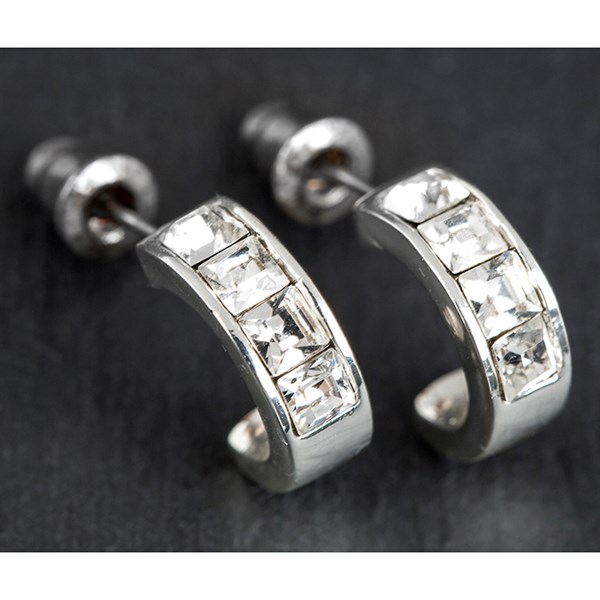 Equilibrium Silver Plated Crystal Hoop Earrings