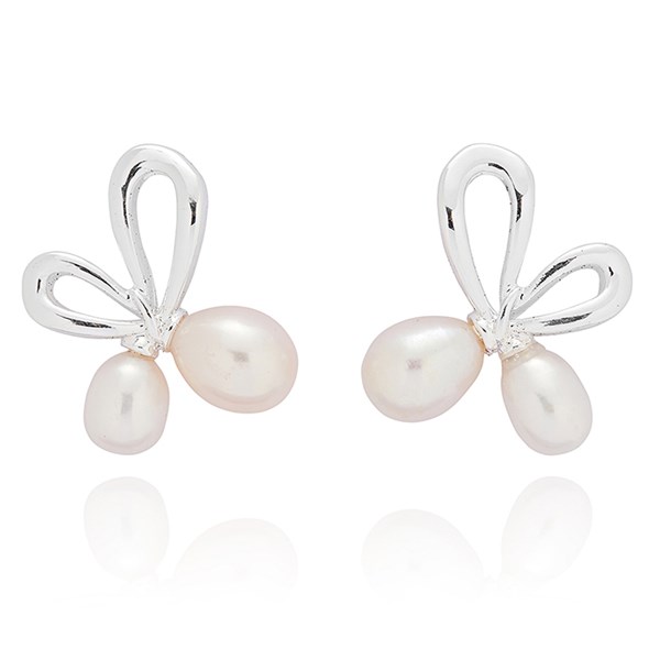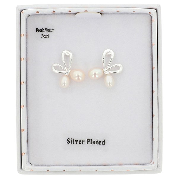 Fresh Water Pearls Bow Silver Plated Stud Earrings