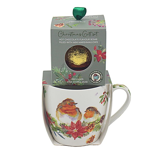 Jennifer Rose Winter Robin Mug & Choc Bomb