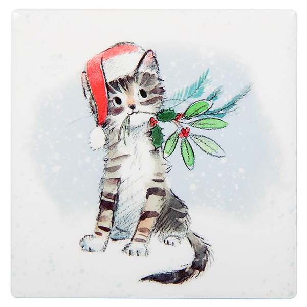 Paper Shed Xmas Coaster Cat with Holly