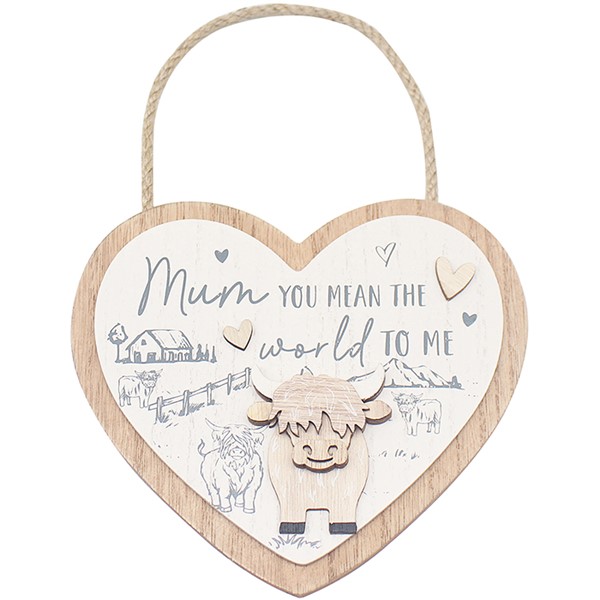 Highland Cow Heart Plaque Mum