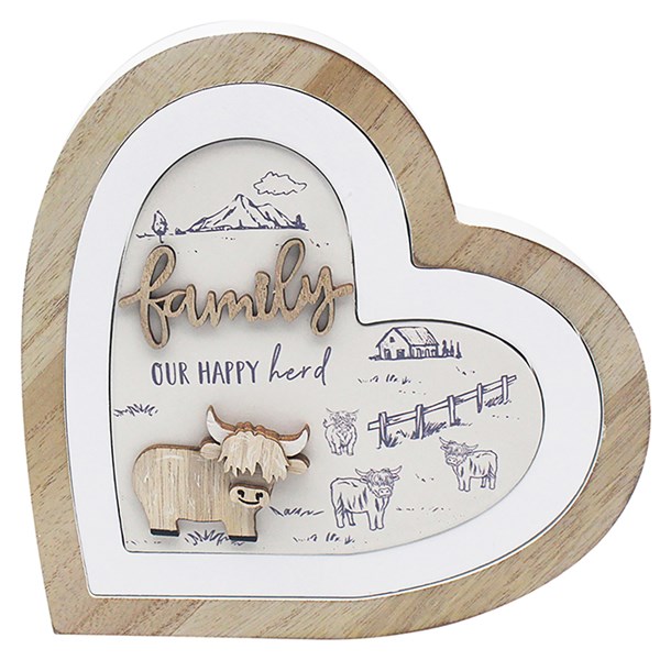 Highland Cow Heart Plaque Family